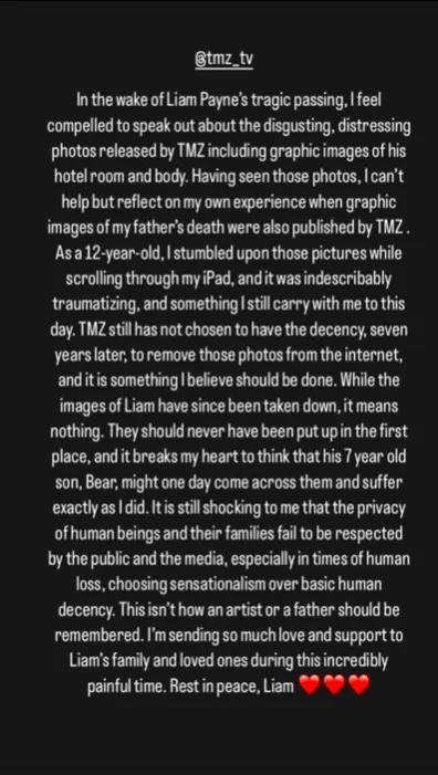 Chris Cornell's Daughter Revisits Her Own TMZ Trauma as She Slams Liam Payne Graphic Death Photos