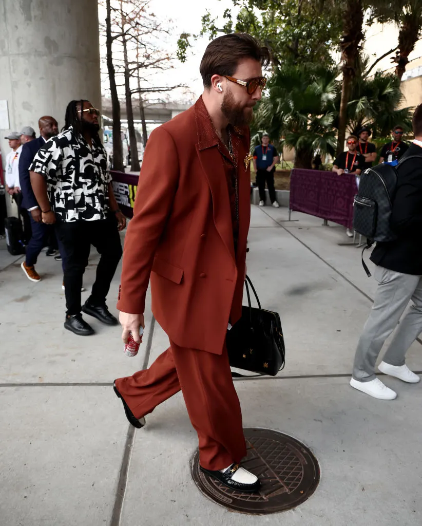 Travis Kelce Sparks 'Bee Gees' Jokes Among Taylor Swift Fans Over 'Crazy' SuperBowl Outfit